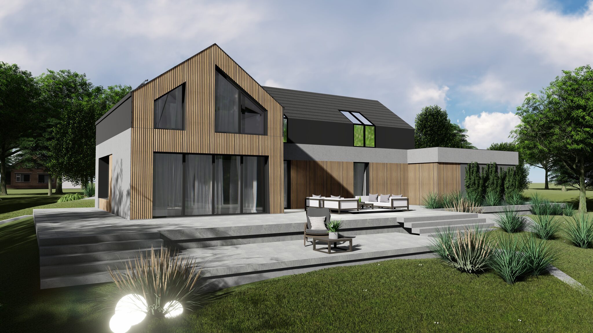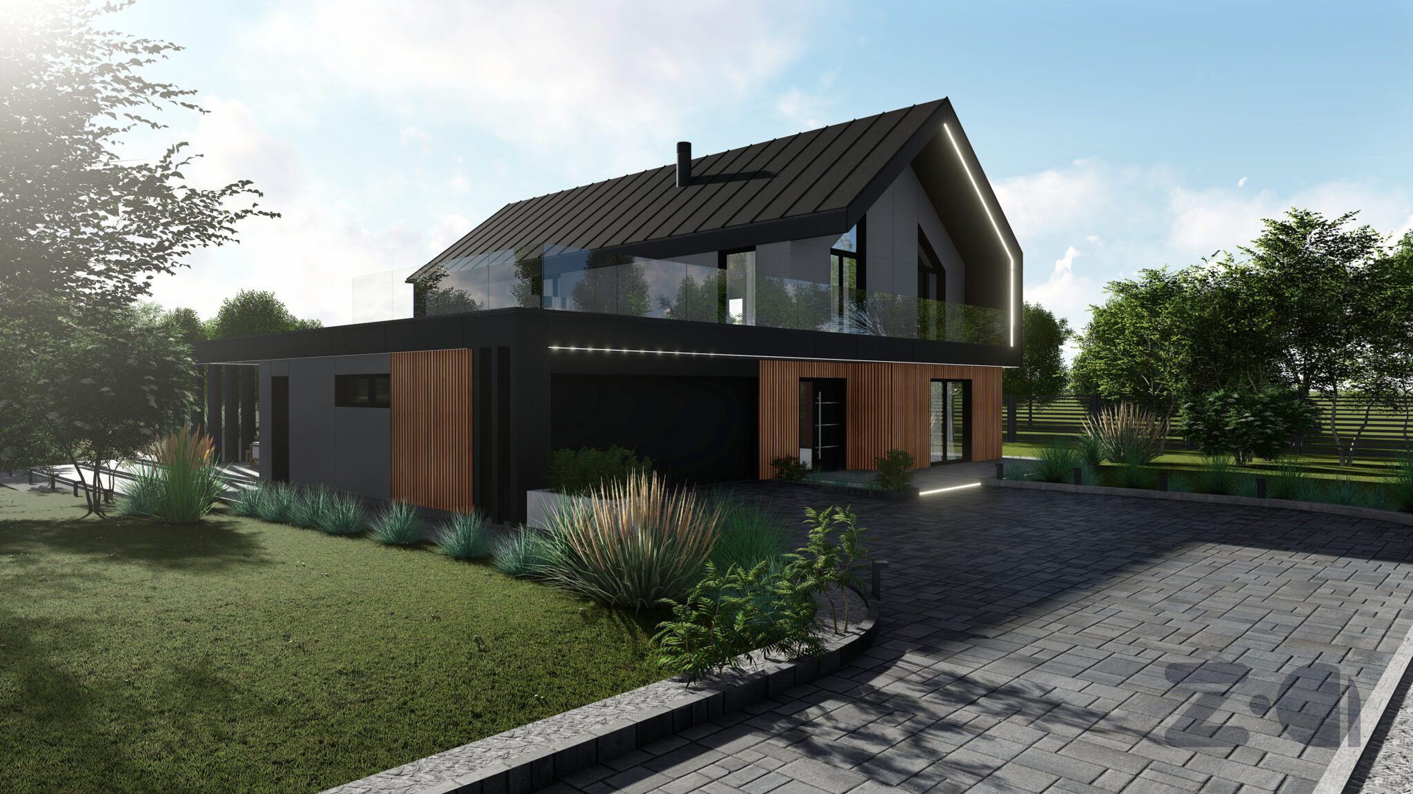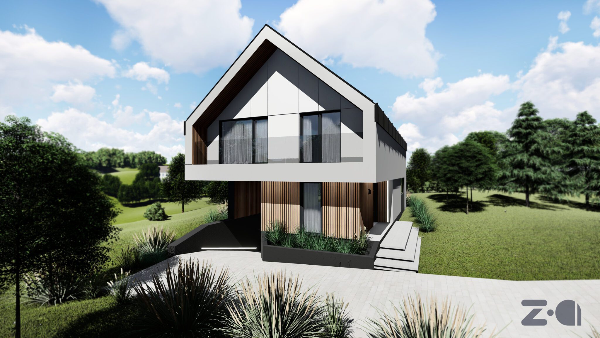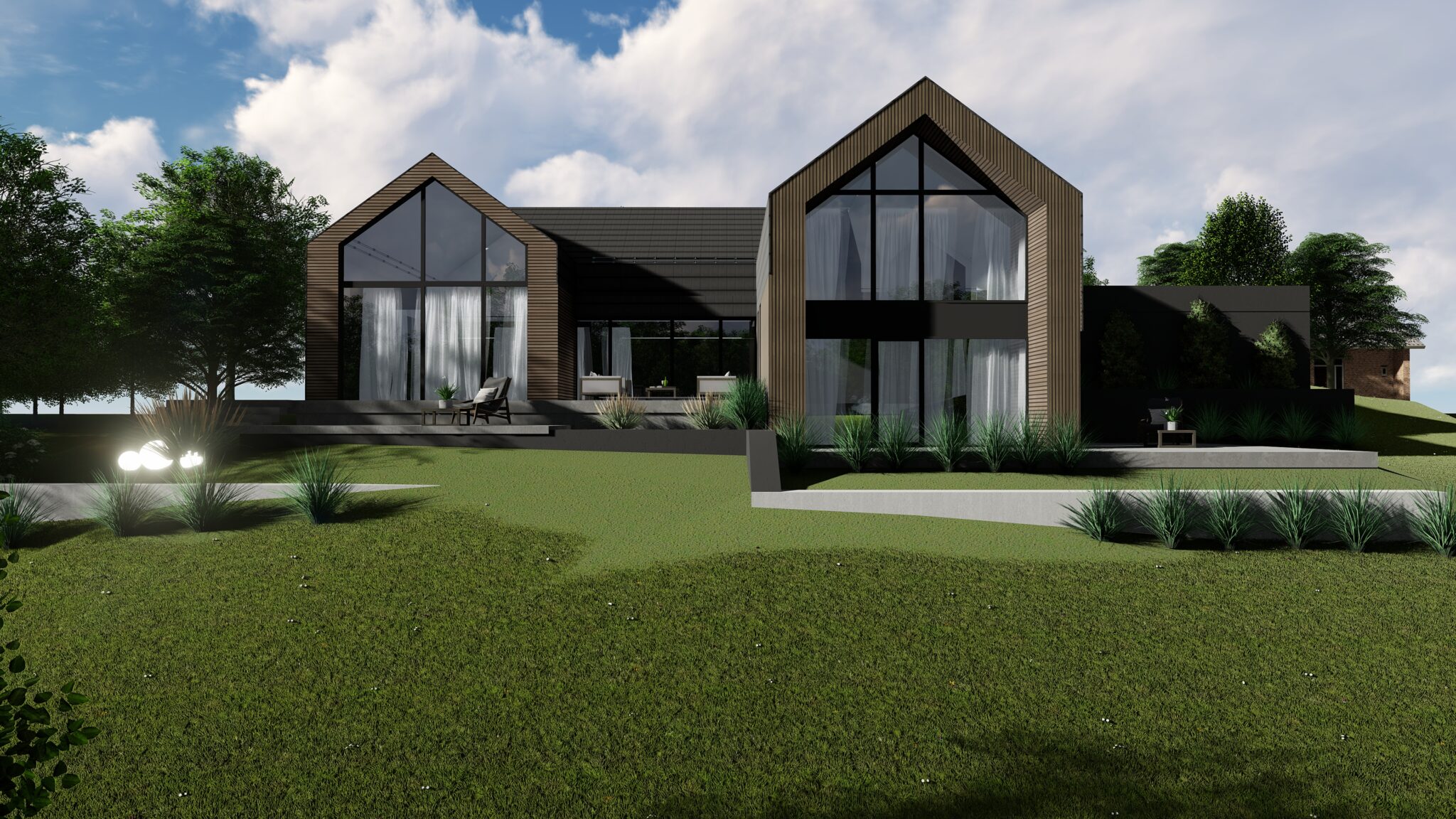 - Forma budynku jest dopasowywana do działki i otoczenia;