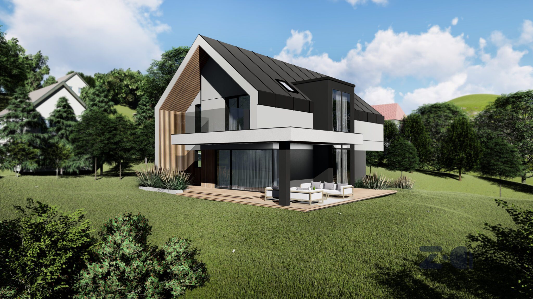 Jest to zależne od tego czy przedstawiona przez nas wizja będzie zgodna z oczekiwaniami klienta. Zwykle ten proces trwa 2-4 miesiące. W tym czasie organizujemy spotkania on-line gdzie udostępniam ekran komputera i wspólnie z inwestorami możemy oglądać bryłę budynku, wprowadzać zmiany i dyskutować nad wybranymi rozwiązaniami. Takie spotkania bardzo sprawnie prowadzą do zadowalającego efektu oraz zakończenia etapu koncepcji z efektem „wow”.