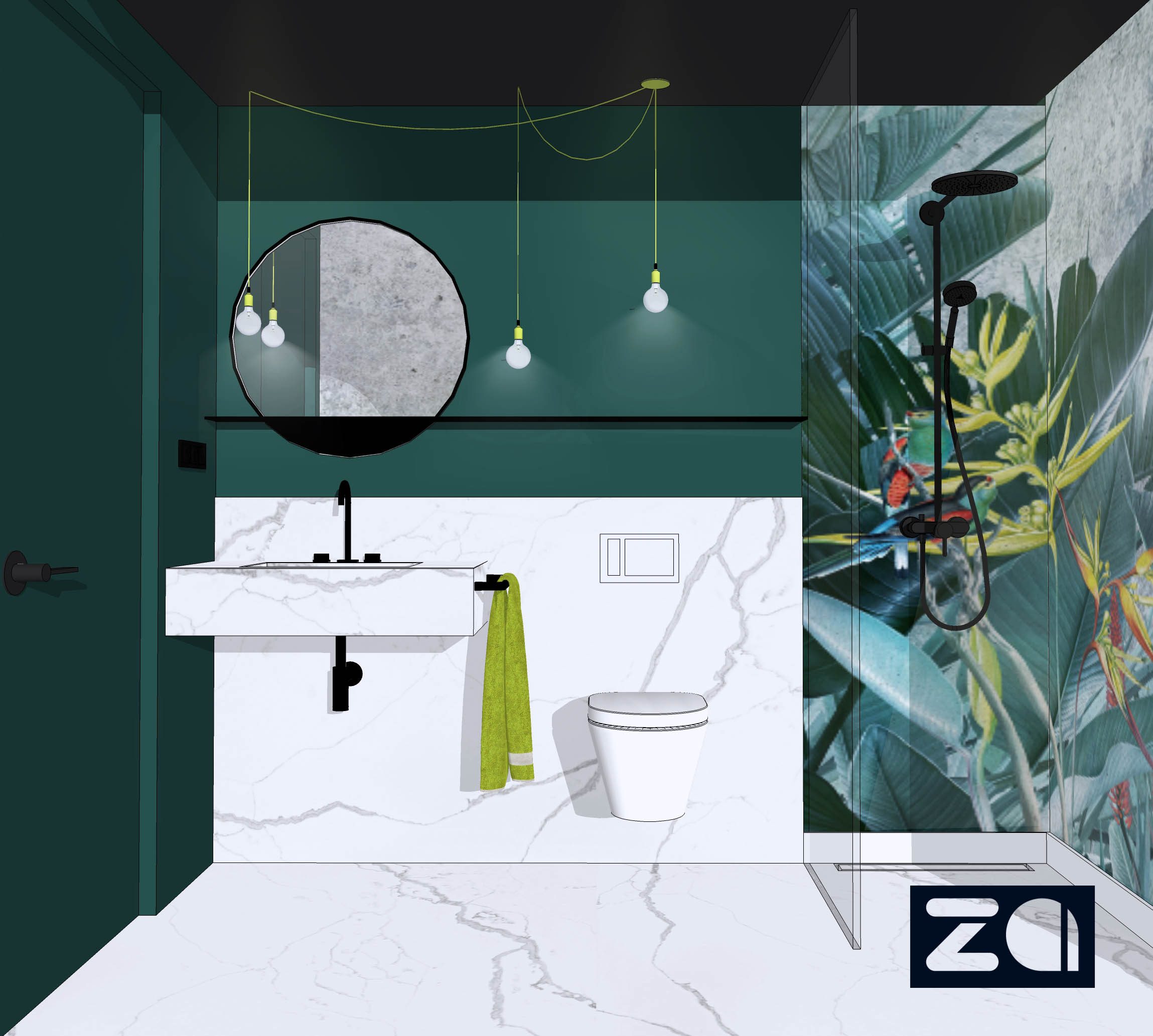 – projekt łazienek w skali 1:25 z wymiarami;