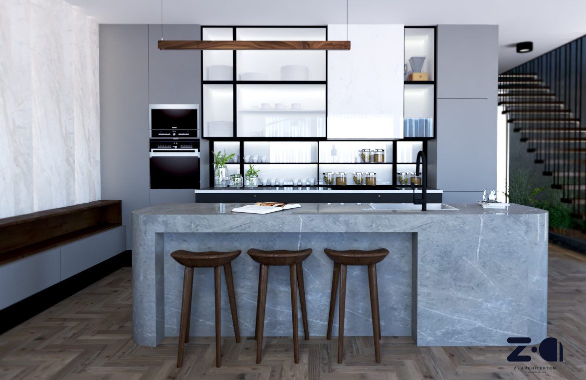 Przeprowadziliśmy inwestora przez cały proces projektowy od szkicu po wizualizacje, pomoc w zamawianiu materiałów oraz finalną realizację.