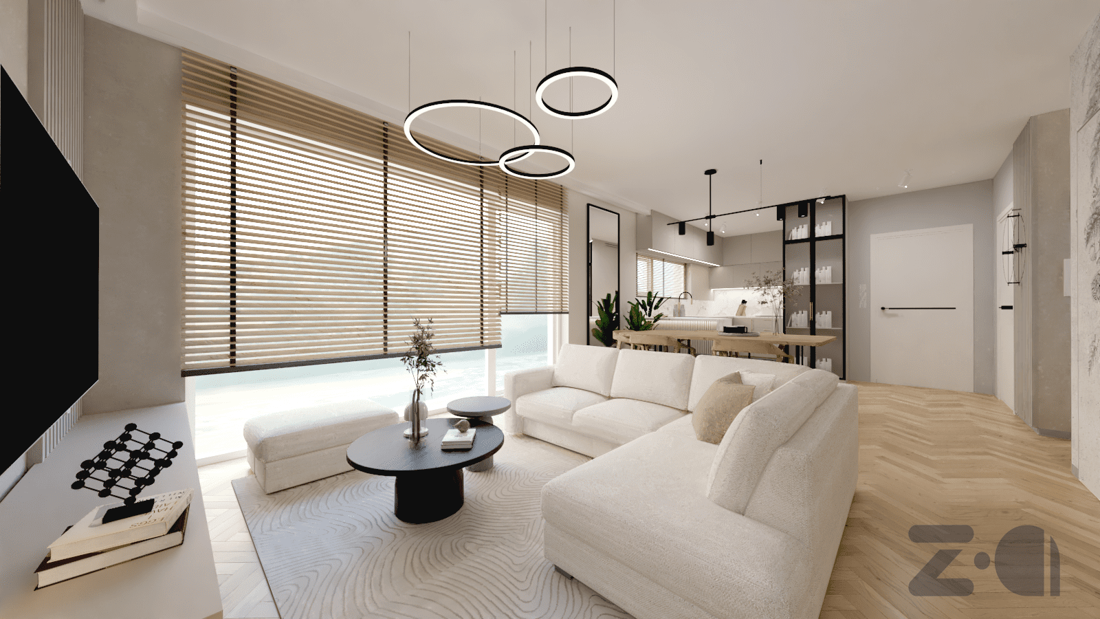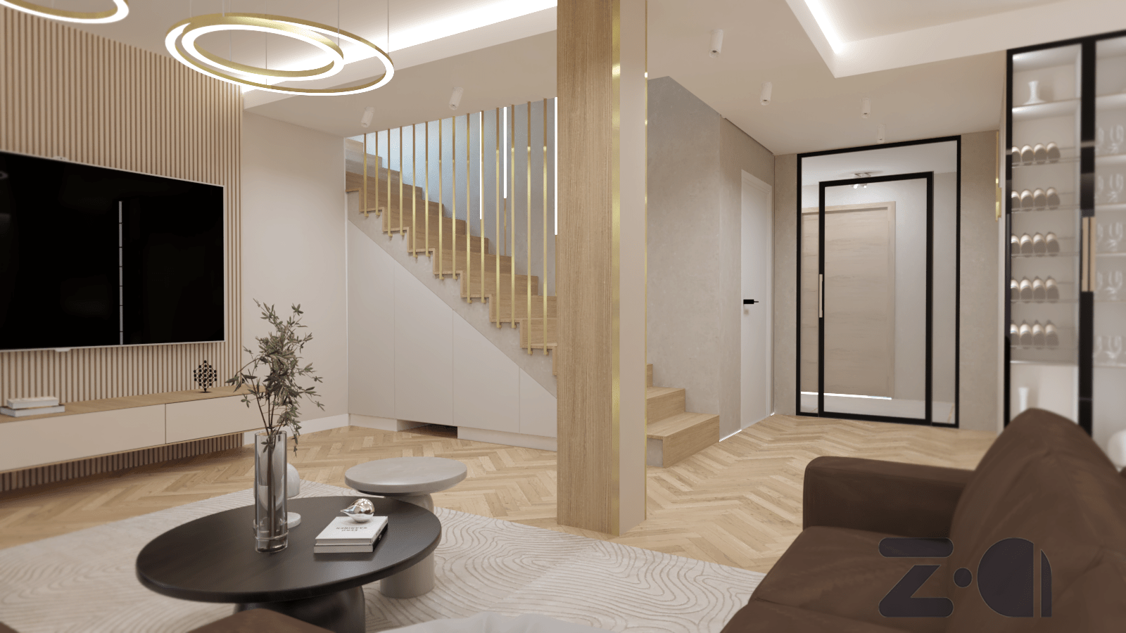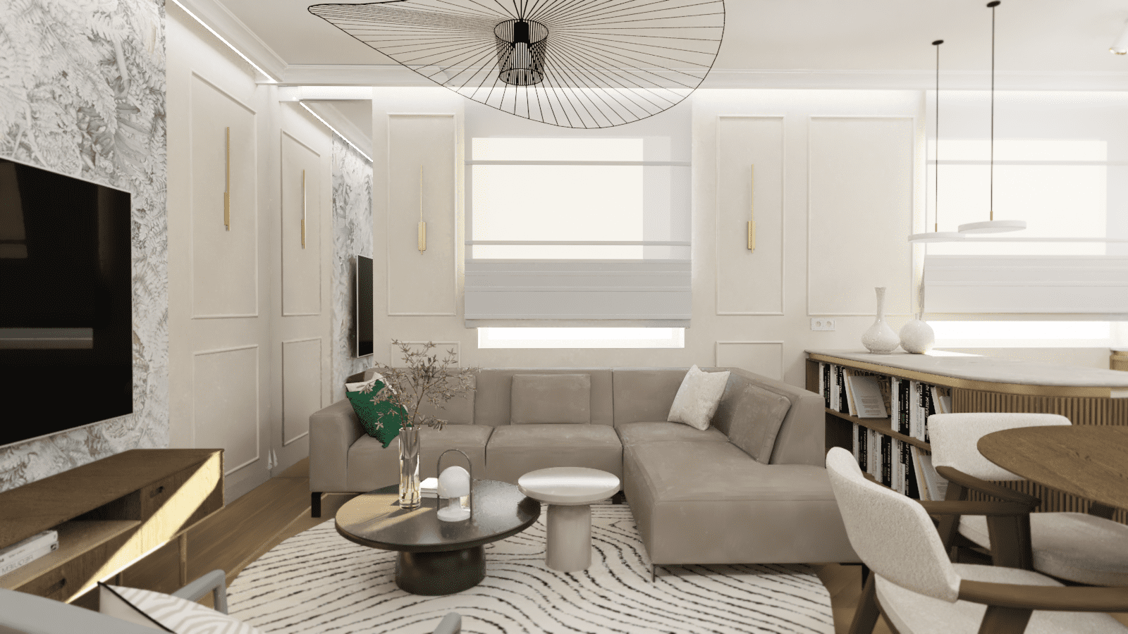 c) wizualizacje wnętrz wybranych pomieszczeń (przestrzenne widoki 3d) obrazujące ogólne zasady rozwiązań estetycznych, materiałowych, kolorystycznych i oświetleniowych;