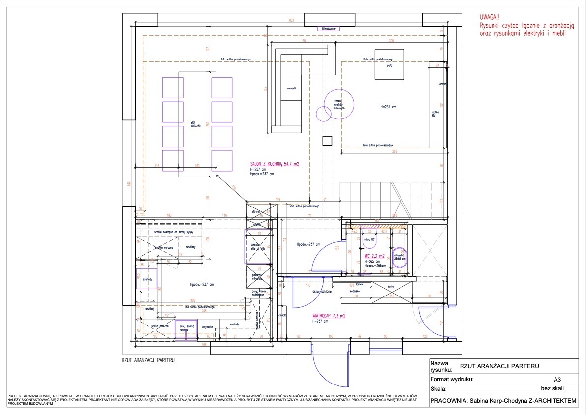 – aranżację projektowanych pomieszczeń w postaci rzutu poziomego w skali 1:50;